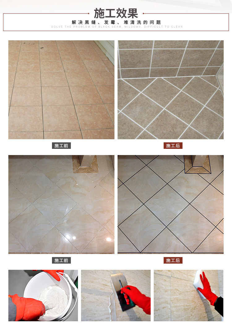 产品描叙:固莱黑色填缝剂60720是一种聚合物改性水泥基填缝料,是替代灰白水泥、硅酮类有机胶等产品填缝,灰白水泥填缝易产生开裂,硅酮类有机胶易老化开裂,从而造成墙体渗漏、泛白等质量问题。