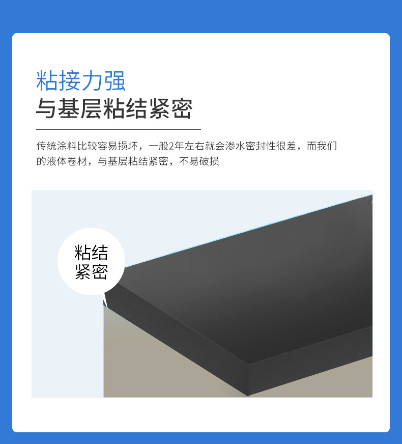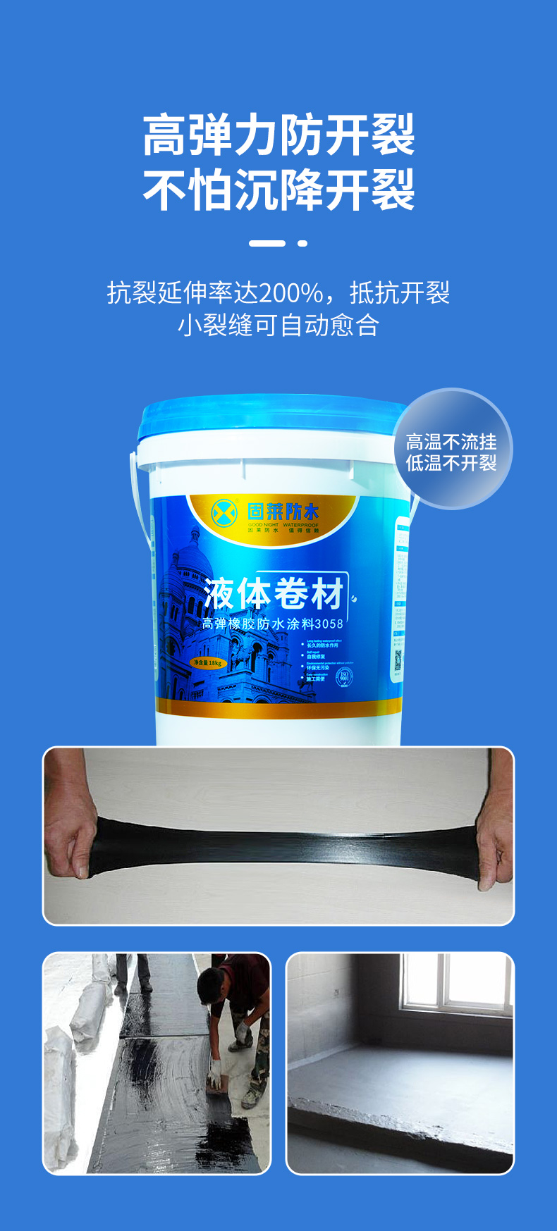 产品描叙:固莱液体卷材是以高弹橡胶乳液配合改性乳化沥青,并加入表面活性剂,乳化剂、防霉剂、水性原材料等多种辅助材料,经专业设备精制而成的一种单组分水性高弹橡胶防水涂料。
