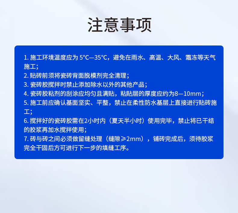 产品描叙:固莱瓷砖粘结剂是一种品质环保型聚合物改性的水泥基复合粘结材料,是由高标水泥、级配砂、再分散乳胶粉和其它添加剂等配制而成。