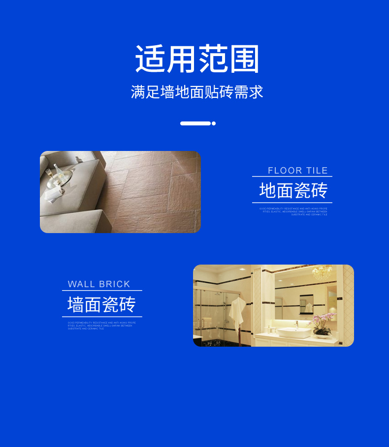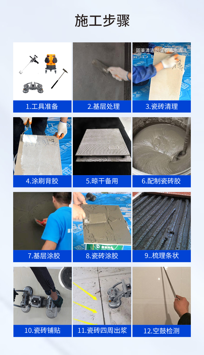 产品描叙:固莱瓷砖粘结剂是一种品质环保型聚合物改性的水泥基复合粘结材料,是由高标水泥、级配砂、可再分散乳胶粉和其它添加剂等配制而成。